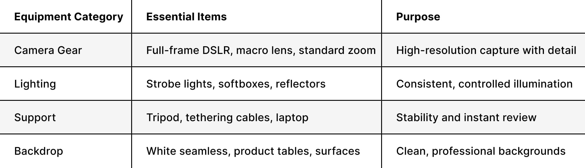 Professional catalog photos demand more than just a good camera. The equipment list varies based on your specific needs, but certain foundational elements remain consistent across most catalog photoshoots.