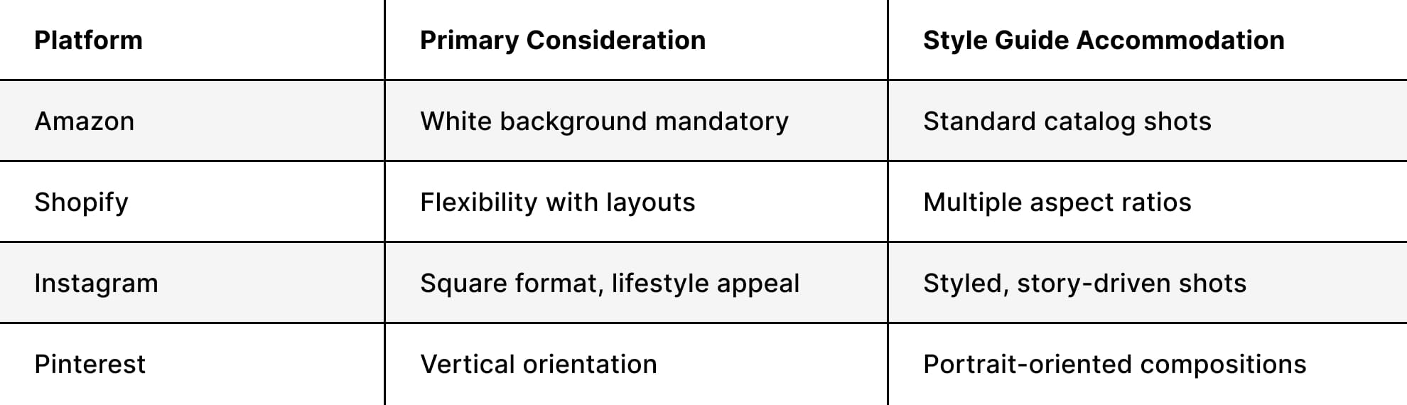 Each marketplace and platform has technical requirements that might influence your shooting approach. Your style guide should include platform-specific variations while maintaining brand consistency.